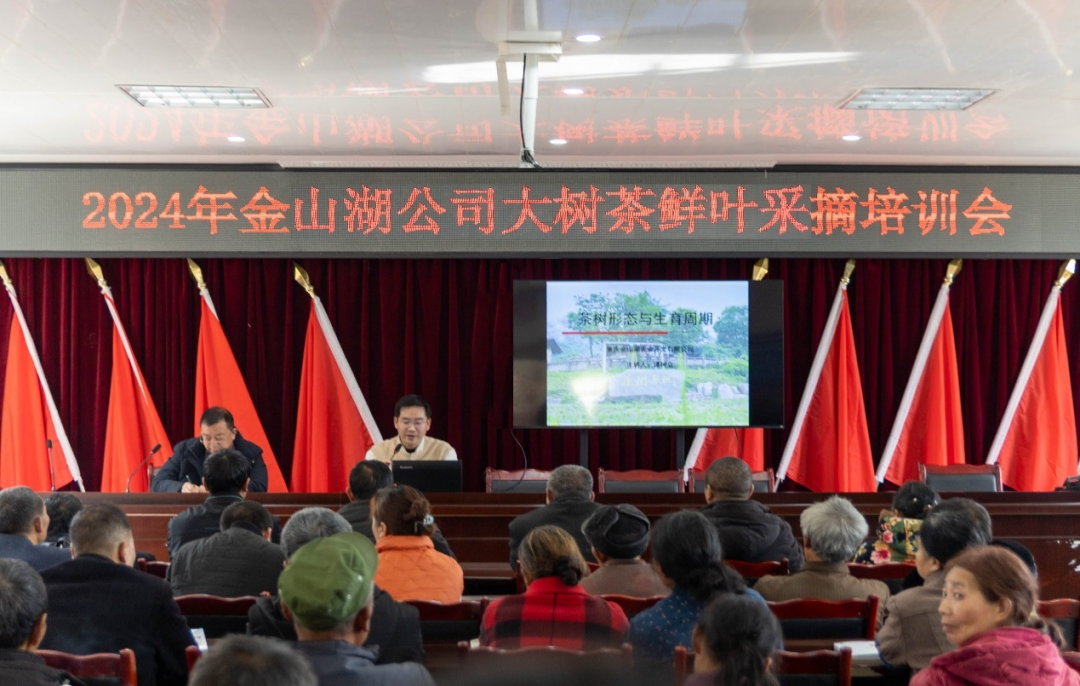 2月20日,重庆金山湖农业开发有限公司组织开展“大树茶鲜叶采摘培训会”,围绕2024年“千年金山红”古树茶鲜叶采收标准和要求对茶农进行产前专业培训,提高茶农采摘技能,确保红茶鲜叶品质。